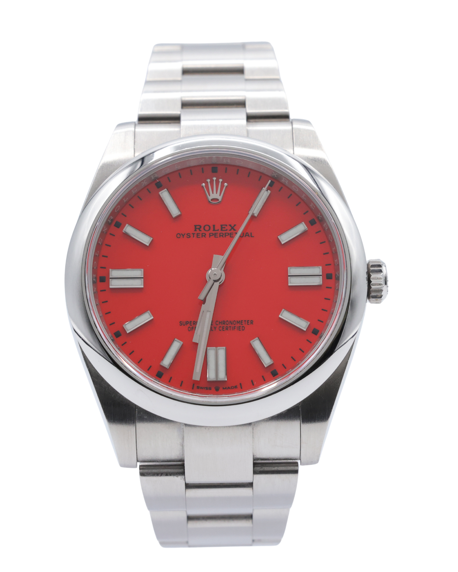 Rolex Oyster Perpetual 41 Coral Red Index Dial on Oyster Ref 124300